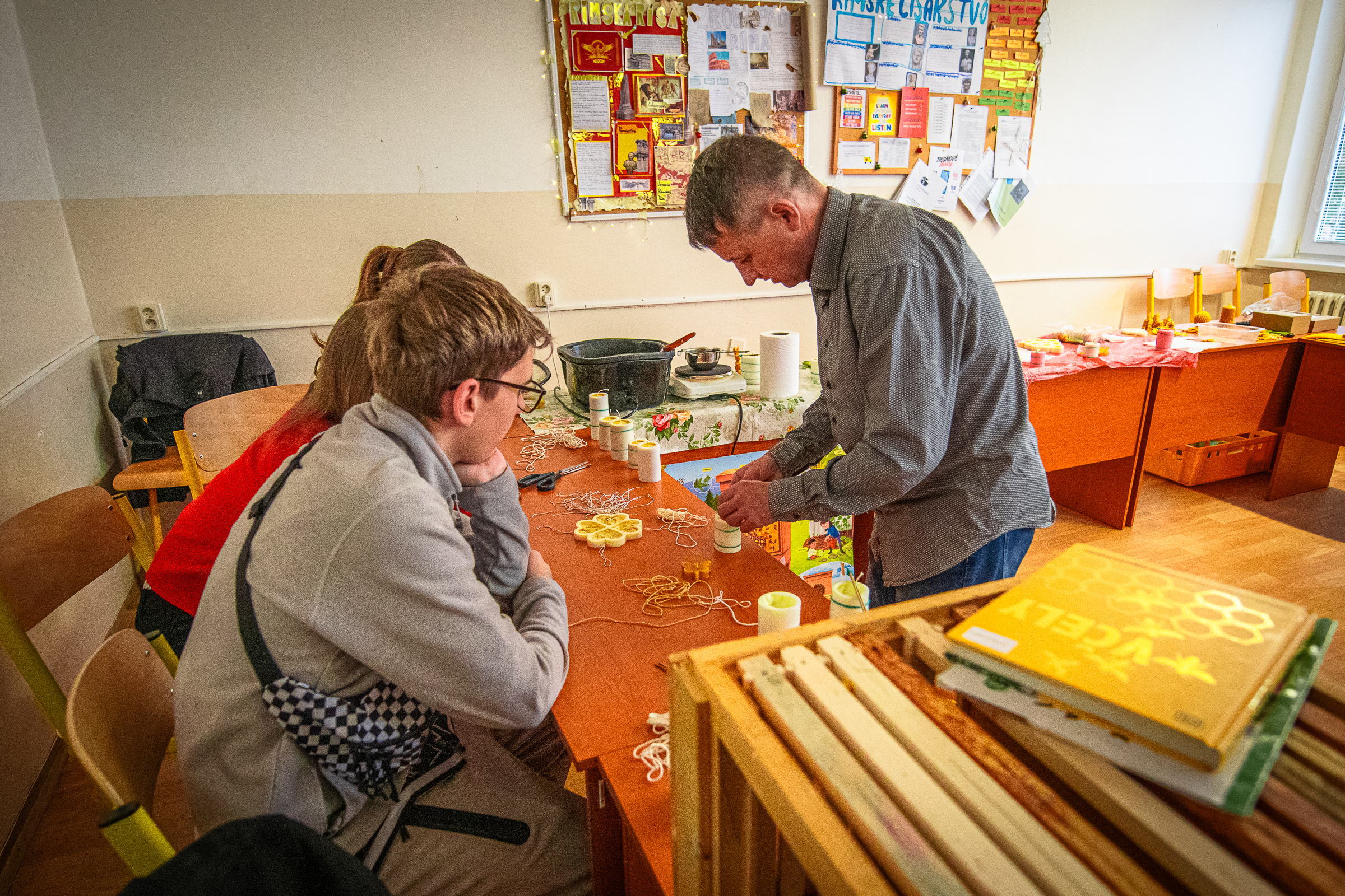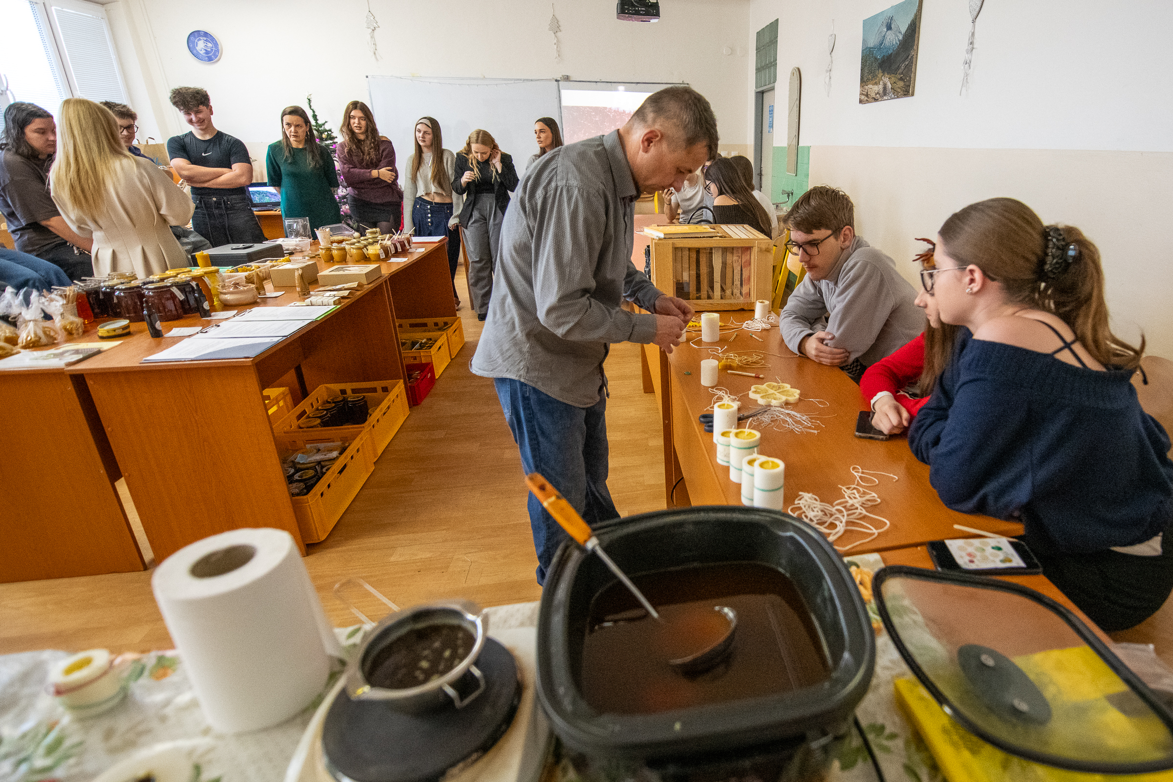 🐝 Trieda 403 – Prednáška, workshop a predaj včelích produktov. Na svoje si prišli milovníci medu, voňavých sviečok. Kto sa nebál poctivej ručnej práce, vyskúšal si vyrobiť sviečky alebo vianočné ozdoby.